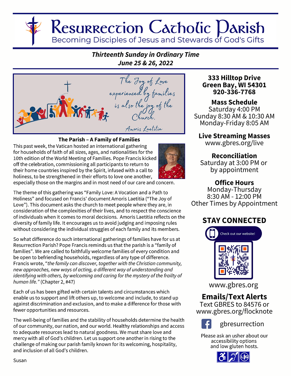 Join us for Mass this weekend in person at 4:00 PM on Saturday, 8:30 or 10:30 AM on Sunday, on www.gbres.org/live, our YouTube channel, and our Facebook page.